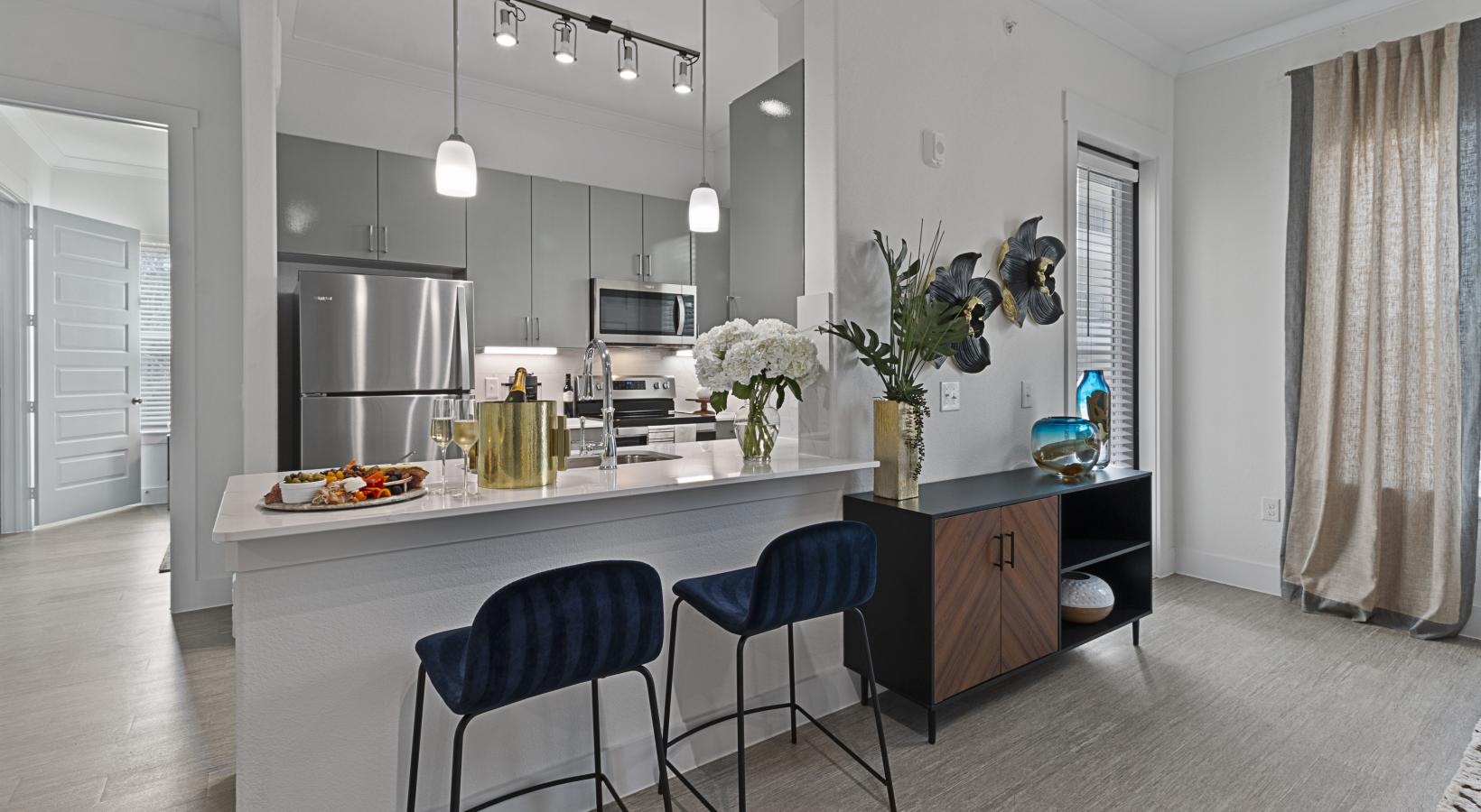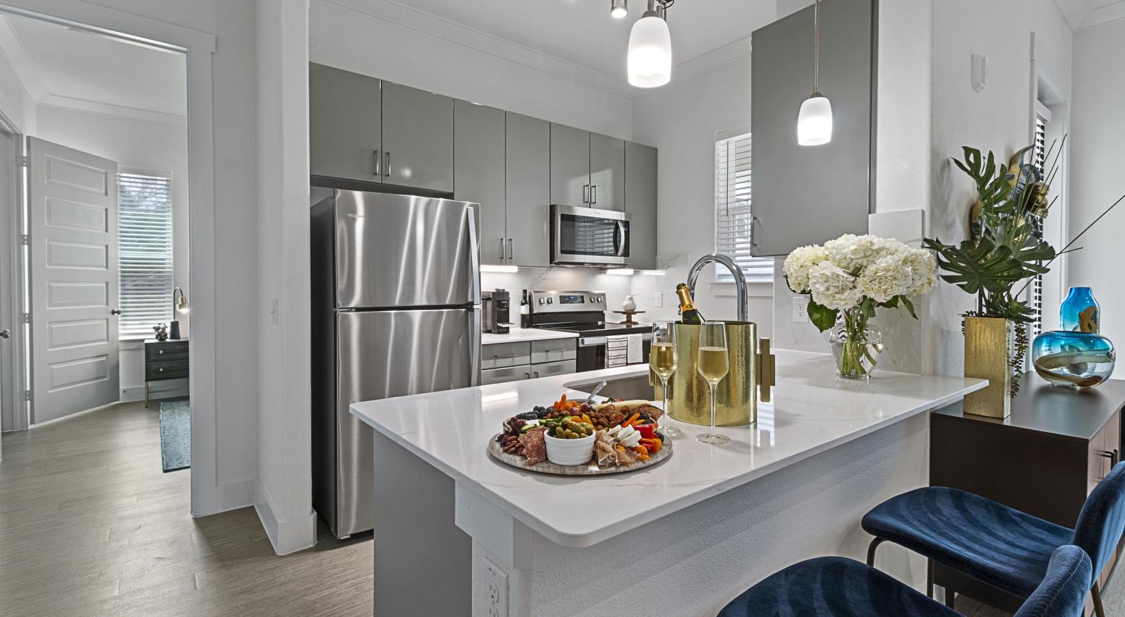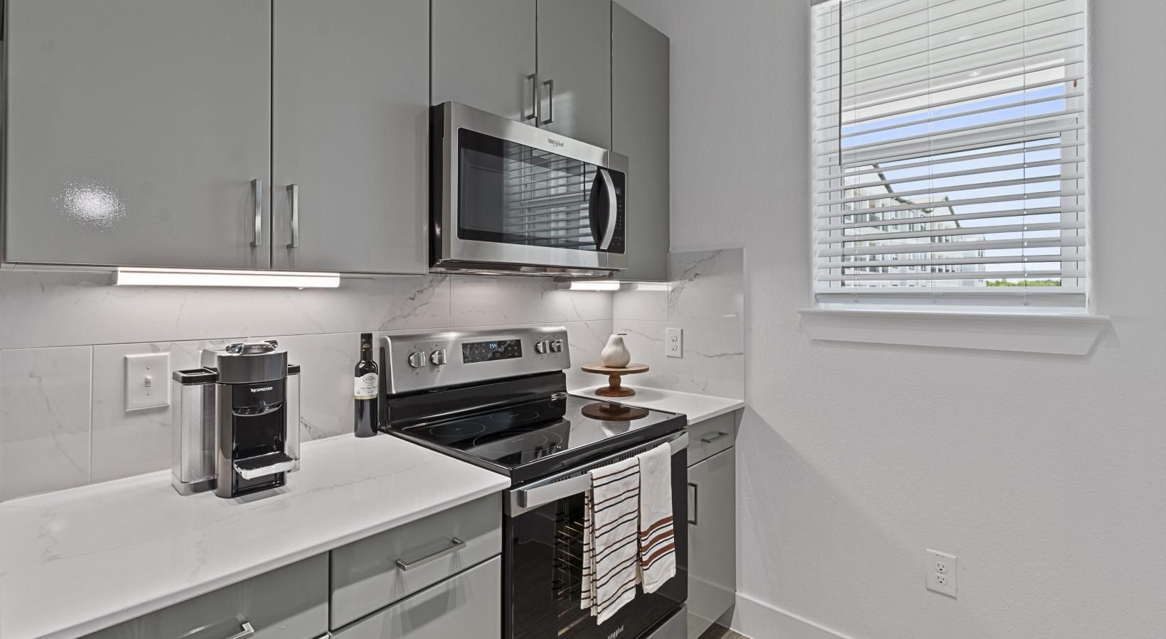 Seeing is believing, and you can trust your eyes when you gaze upon the lavish details of Reveal at Onion Creek Apartments. Embark on a visual journey through our luxury community and explore every nook and cranny, from gorgeous views to upscale finishes and thoughtful services - these apartments in Southwest Austin have it all. Fall in love with the whimsical look of our homes for rent in Austin, TX. with smart key entry, wood-style plank flooring, and charming patio/balcony. The soaring ten-foot ceilings meld with designer kitchens with stainless-steel appliances, oversized cabinets, and modern quartz countertops and baths that boast luxurious finishes and stylish garden tubs. Our amenity spaces steal the spotlight with an infinity-edge pool, fireplace lounge, trellis-shaded kitchen, private cabanas, tanning deck, game room with billiards, social lounge with Wi-Fi and coffee, aqua massage bed along with private one- and two-car garages.