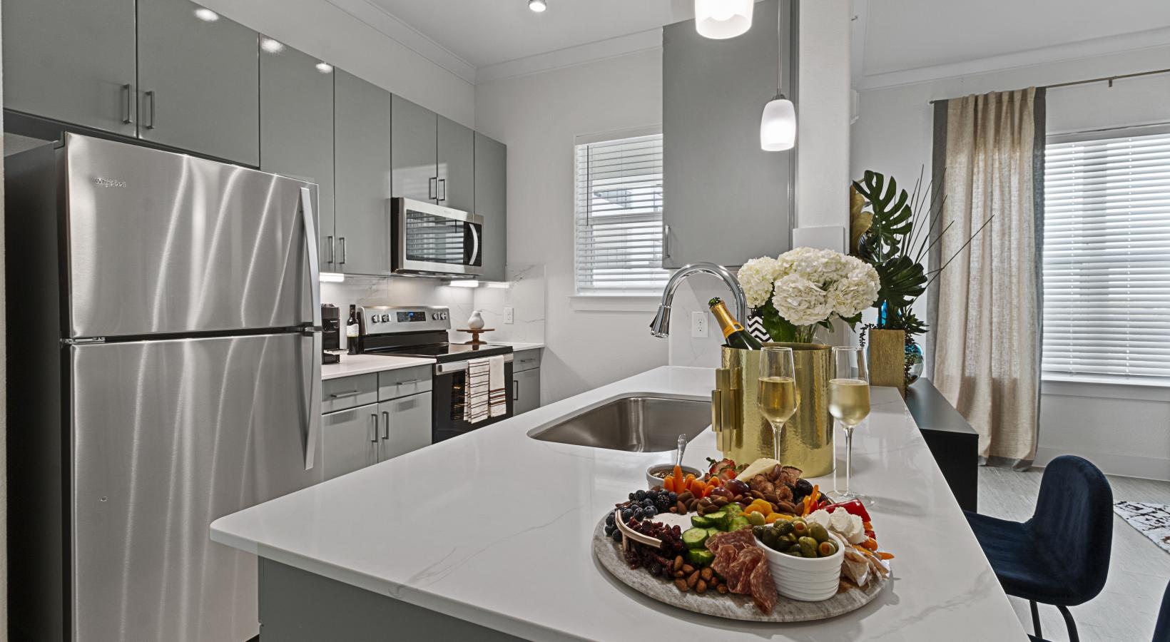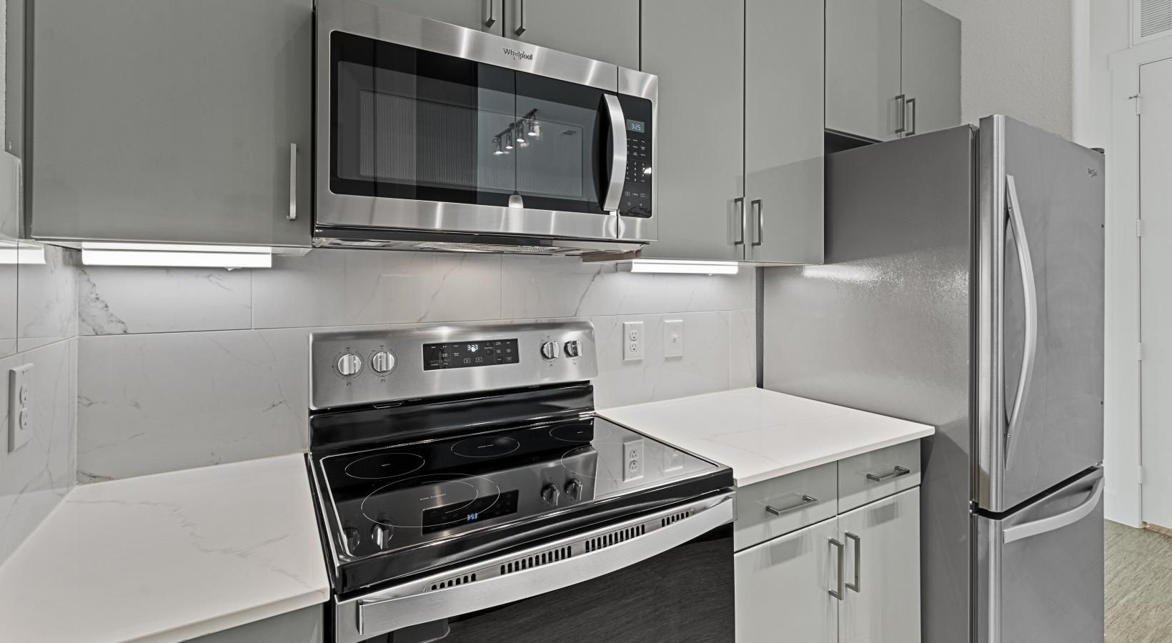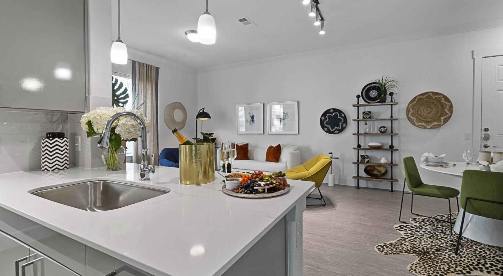 Seeing is believing, and you can trust your eyes when you gaze upon the lavish details of Reveal at Onion Creek Apartments. Embark on a visual journey through our luxury community and explore every nook and cranny, from gorgeous views to upscale finishes and thoughtful services - these apartments in Southwest Austin have it all. Fall in love with the whimsical look of our homes for rent in Austin, TX. with smart key entry, wood-style plank flooring, and charming patio/balcony. The soaring ten-foot ceilings meld with designer kitchens with stainless-steel appliances, oversized cabinets, and modern quartz countertops and baths that boast luxurious finishes and stylish garden tubs. Our amenity spaces steal the spotlight with an infinity-edge pool, fireplace lounge, trellis-shaded kitchen, private cabanas, tanning deck, game room with billiards, social lounge with Wi-Fi and coffee, aqua massage bed along with private one- and two-car garages.